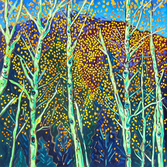 Cathy Carey’s paintings express an essential connection of all things through a joyous spirit. As an accomplished oil painter, Carey works in a unique version of a contemporary color expressionist style. She tells her stories of exhilarating joy using gestural brush strokes, vivid color and rhythmic compositions.