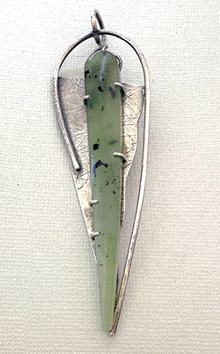 Necklace Doris King Nephrite Jade set in SS on SS cable. $478
