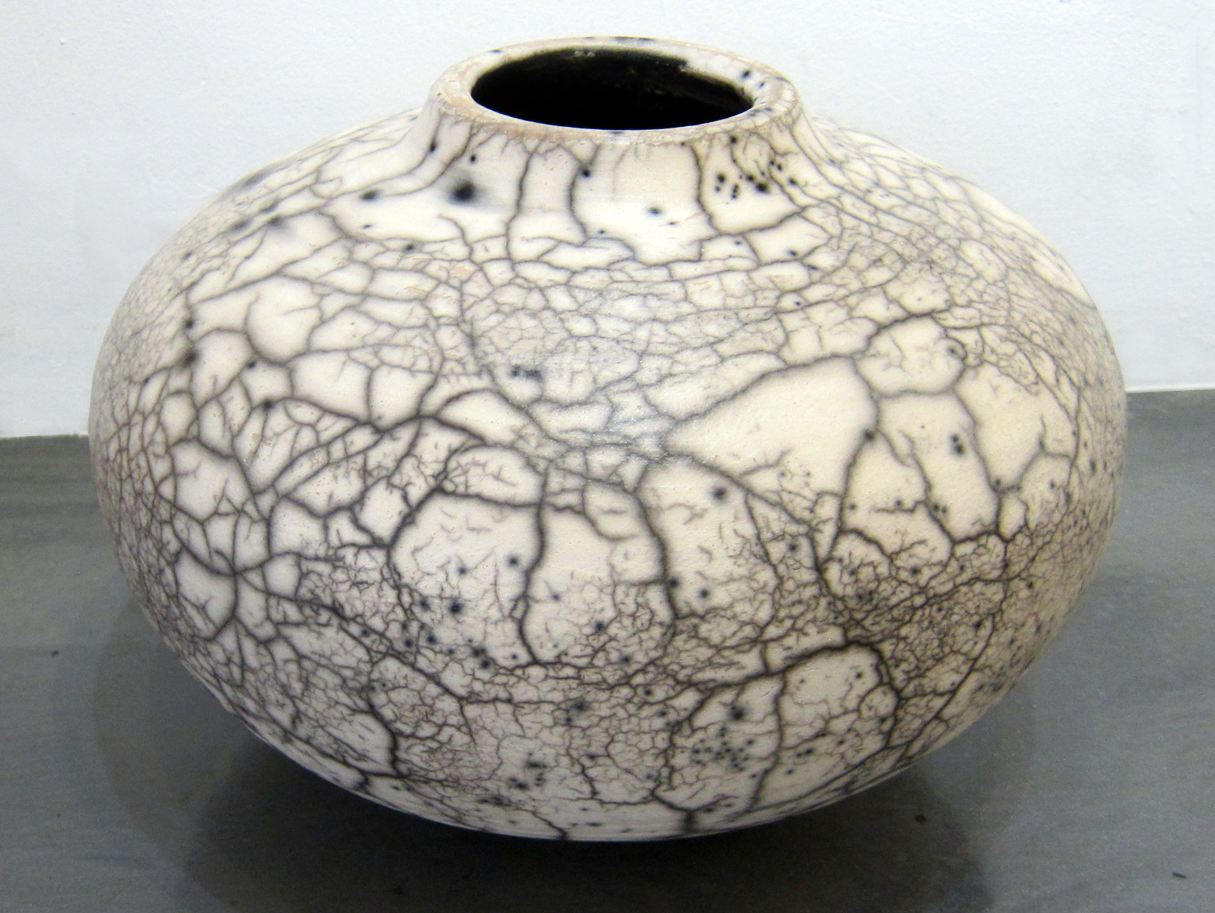 Large Naked Raku Pot Jeffrey Perkins 12" x 15.5" dia raku $400