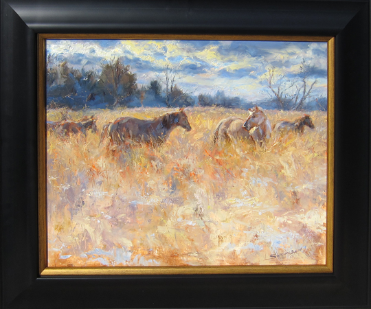 No Wilde Meyer western show could be complete without horses. Chaille Trevor knows and paints horses like no one else. Straightforward and to the point, Chaille’s paintings capture the correct anatomy and graceful movement of one of the world’s most beautiful animals. Tracy Miller’s fauvist colored paintings of western wild animals contrast greatly with Chaille’s soft subtle horses. Miller’s interpretations engage the viewer, first through an attraction to bright color, then with the playful rendering of the animals’ personalities.